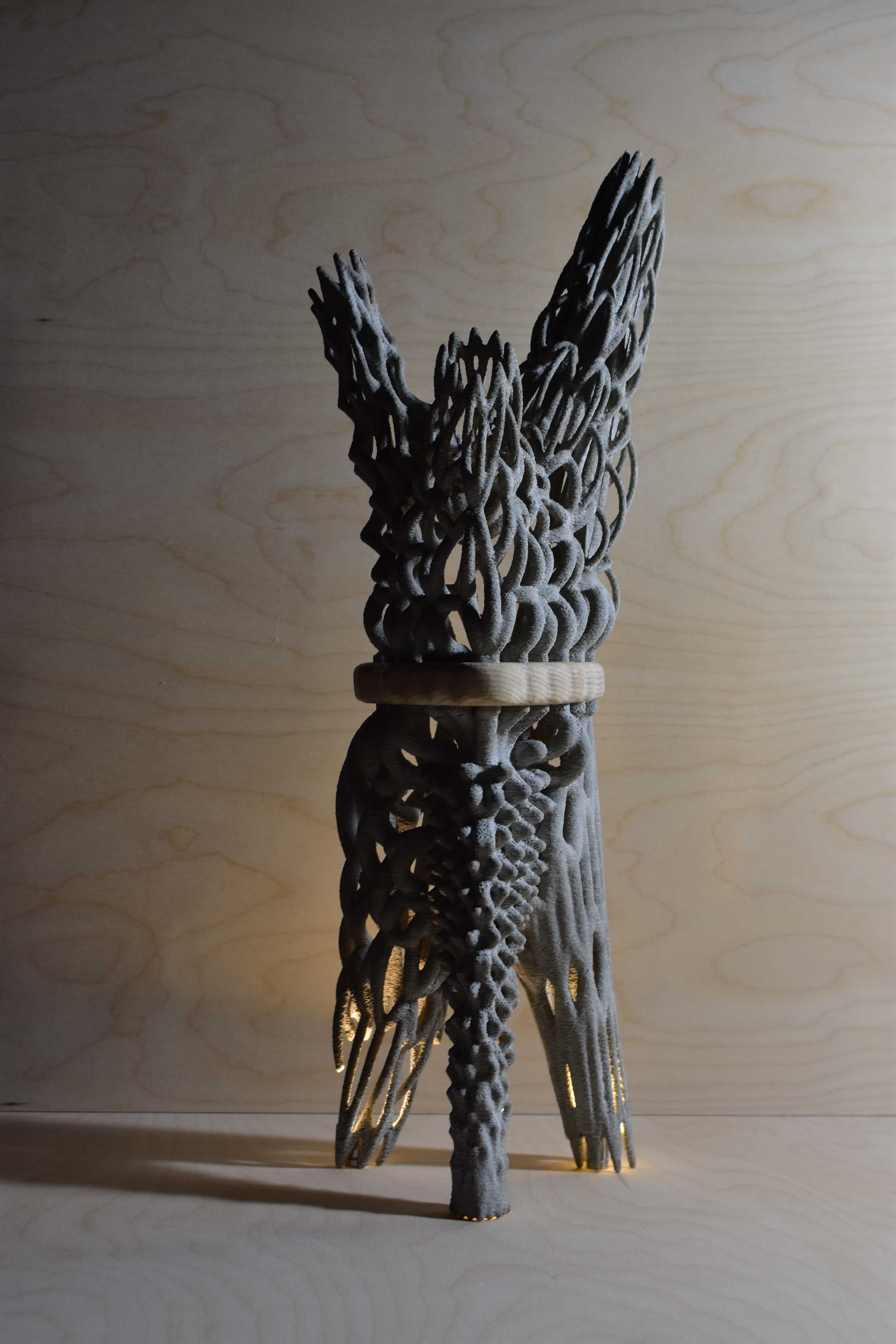 its making; layered resolution, surface artifacts, and moments that flirt with failure as fabrication parameters shift. The work emerges from studies of