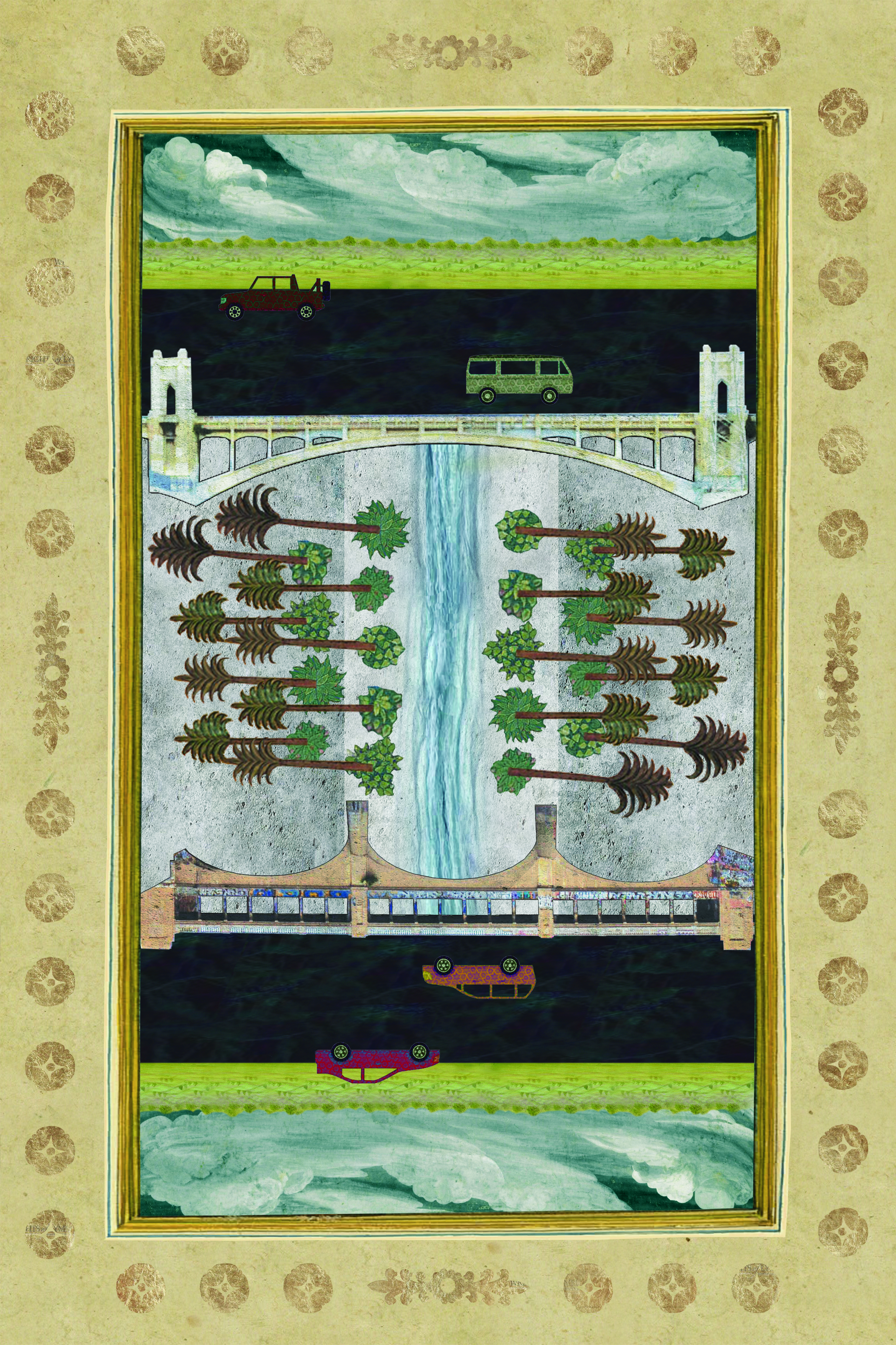 By using an aesthetic of Persian miniatures, the thesis re-orientalizes representations of the palm tree. I use the term re-orientalize intentionally, also calling to a reorienting of the interpreter. This thesis uses a flat aesthetic, but tells a collapsed mythology. The proposal is architecturalized through a series of interventions in the city that can be approached either on their own, or as a constructed loop. The series of interventions are put together as a “nameh,” which is a book from a Persian tradition that tells a type of history through painting and verse. This is the Palmnameh: The Epic of The Palm.